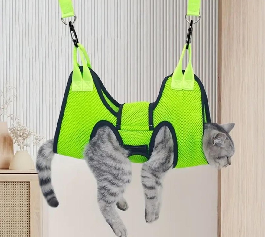 Nefes alabilen file kumaştan yapılmış yeşil renkli kedi asma tasması, kedilerin rahat asılması için tasarlanmıştır. Ayarlanabilir kayışlar ve klipslerle sabitlenir. s bedendir patisini bile geçiremedim kendisine