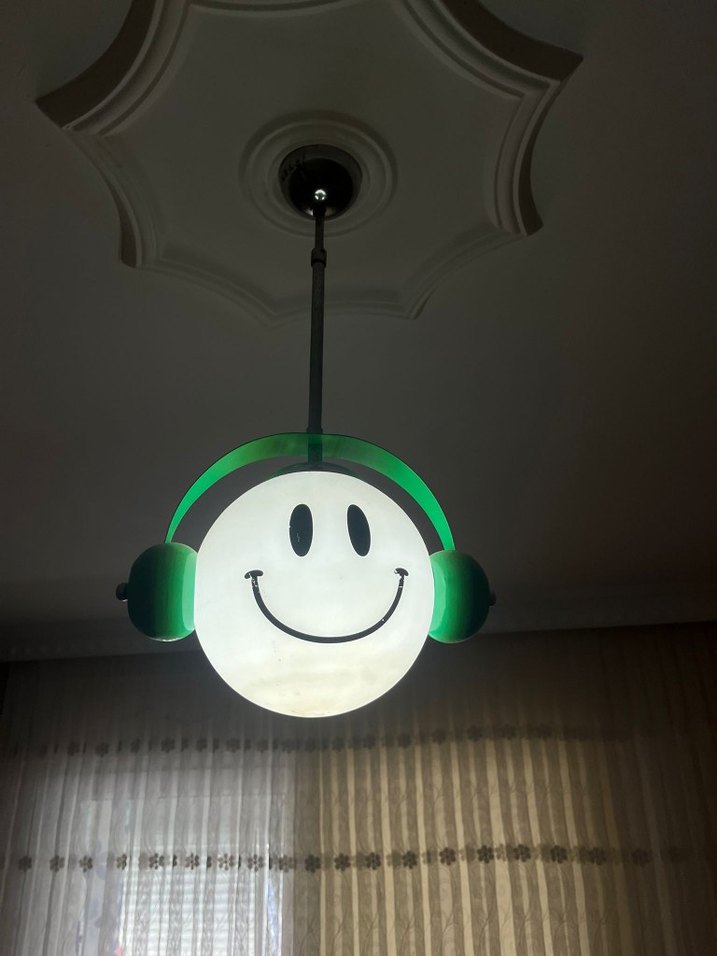 Yeşil Renkli Kulaklıklı Gülümseyen Lamba çocuk odası avize
