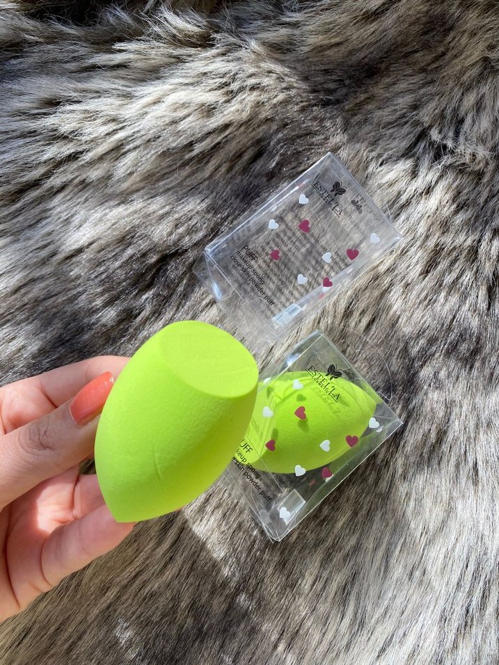 Renkli yeşil makyaj süngeri, pürüzsüz dokusuyla fondöten uygulamasında eşit sonuç sağlar. Kalp desenli şeffaf kutuda.