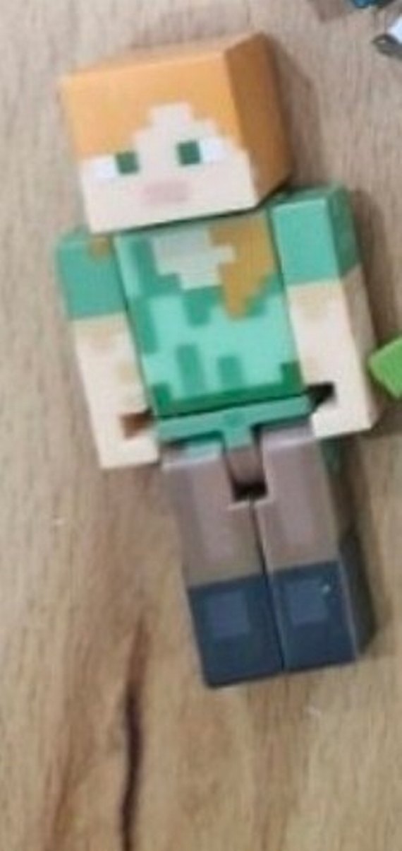 Bu Minecraft figürü, açık yeşil ve bej renklerde olup hareketli uzuvlara sahiptir. Piksel tarzını yansıtır.