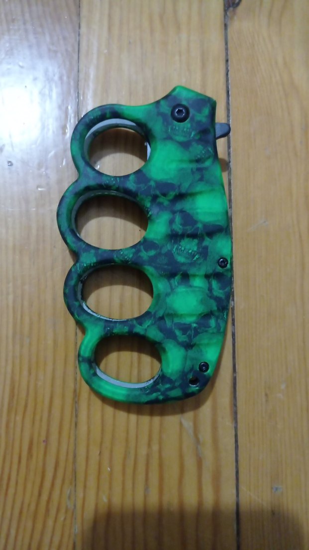 Dört parmak deliği bulunan, koyu yeşil mermer desenli oyuncak tabanca. Kompakt ve sağlam yapıya sahiptir.