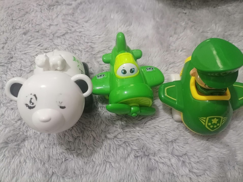 Yeşil renkte, renkli ve sevimli yüzlü oyuncak uçaktır. Kanatları ve pervanesi vardır, çocuklar için eğlencelidir. ✈️