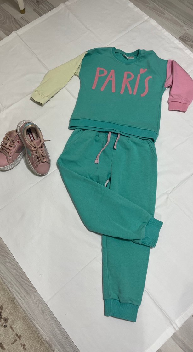 Yeşil Renkli Paris Baskılı Kız Eşofman Takımı