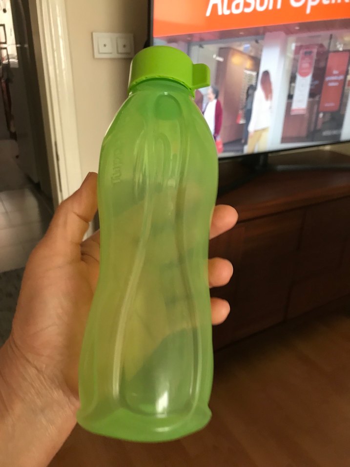 Canlı yeşil renkte, kapaklı ve kolay kavranabilen pürüzsüz tapıwer