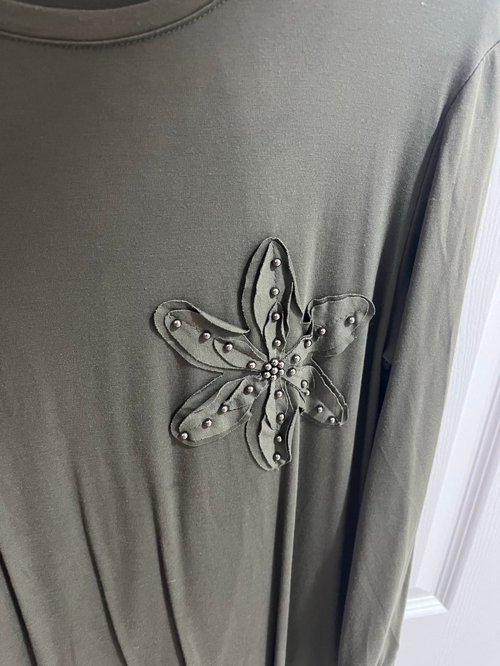 Yesil renkte, işlemeli ve boncuk detaylı rahat takim