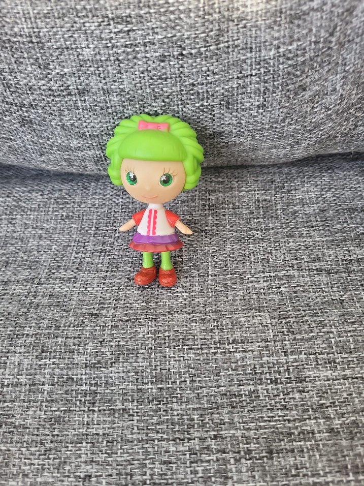 Canlı yeşil saçları, pembe fiyonk ve kırmızı ayakkabıları olan renkli oyuncak figür. Detaylı yüz ifadeleri ve hareketli duruşu bulunur. 7 cm boyunda. ürün yurdışında alındı, kullanılmadı. 3 farklı aynı seriyeden gardirobumda mevcut.