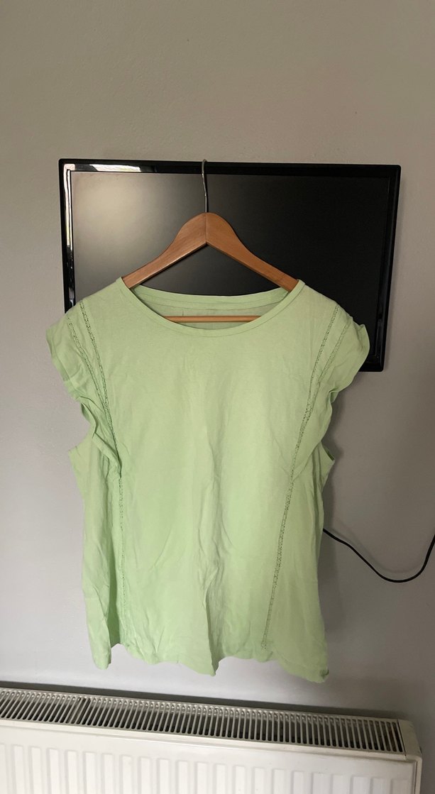 Nefes alabilir koton kumaştan yapılmış, yuvarlak yaka ve kolsuz tasarımlı yeşil pastel renk bluzu. Salaş kesimi ile rahat ve şık bir görünüm sunar. Günlük kullanıma uygundur.
