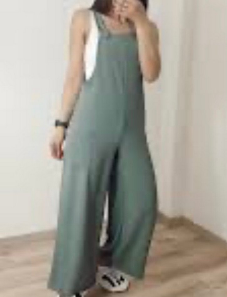 salaş kesim, kolsuz kadın tulumu. Yumuşak keten kumaştan üretilmiştir, gündelik sokak stili için uygundur.