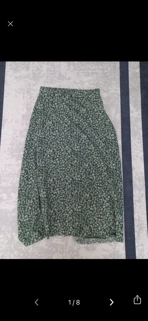 Yeşil renkte, salaş kesim ve drapeli detaylara sahip midi etek. Yumuşak sentetik kumaştan, bohem tarzda, rahat günlük kullanım için uygundur.