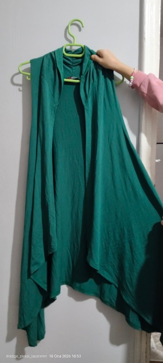 Yeşil renkte, salaş kesim yelek
