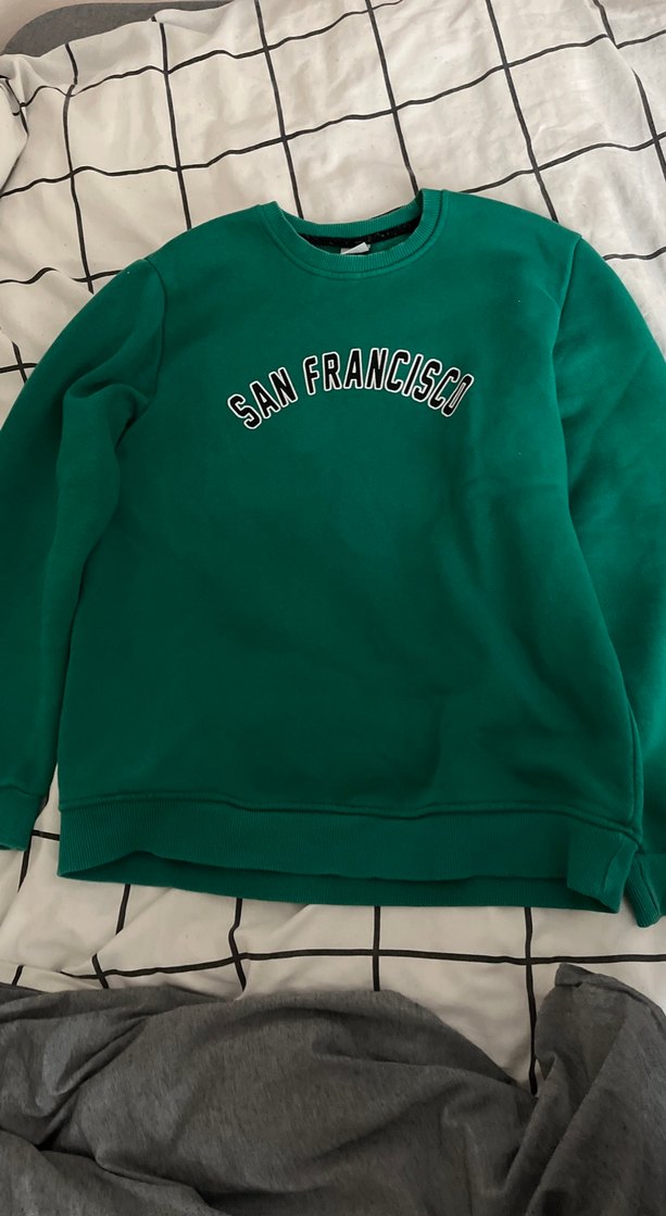 Koyu yeşil renkte, uzun kollu ve yuvarlak yakalı, bol kesim kadın sweatshirt. Önünde San Francisco baskısı bulunur. Yumuşak ve sıcak kumaştan günlük kullanıma uygun.