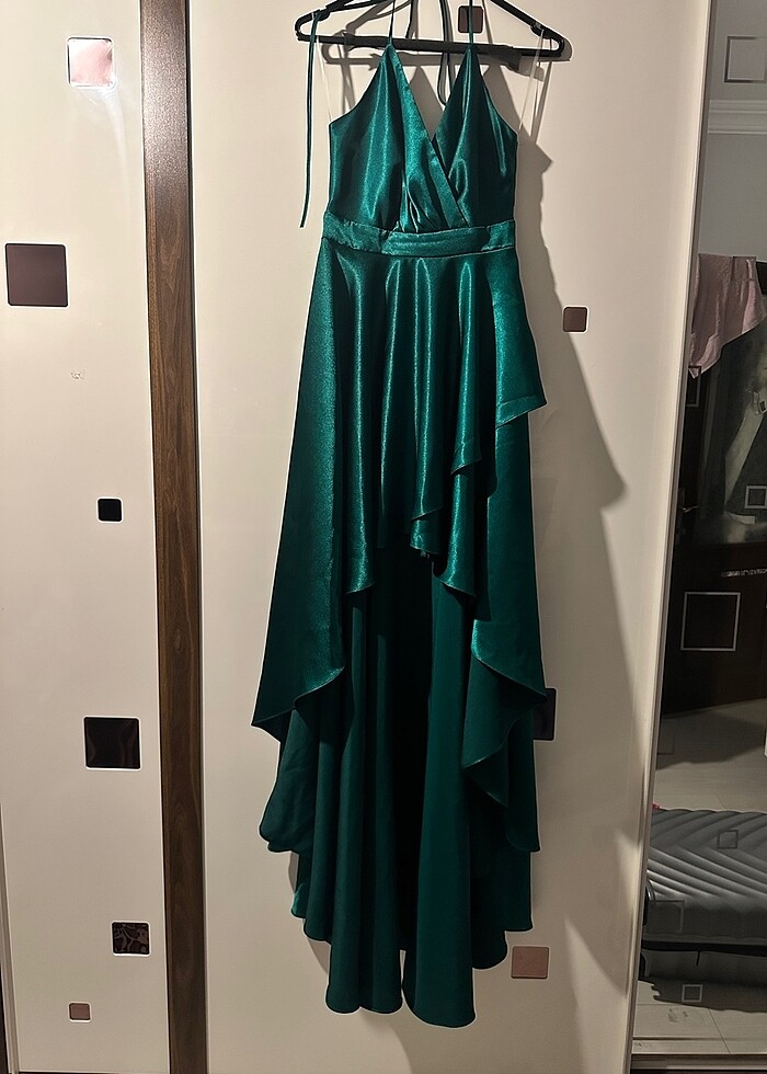Yeşil saten abiye elbise Sadece 1 kez giyildi. Tadilat yok.