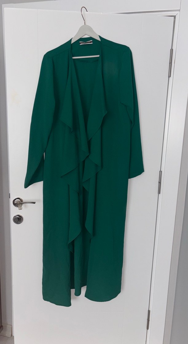 Yeşil saten kumaştan, 3 parçalı takım etiket üzerinde