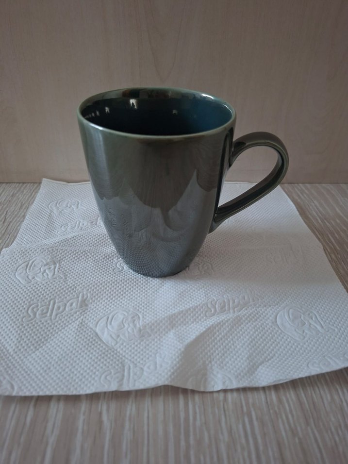Sıcak içecekler için uygun, rahat saplı ve pürüzsüz yüzeyli yeşil seramik kupa. ☕