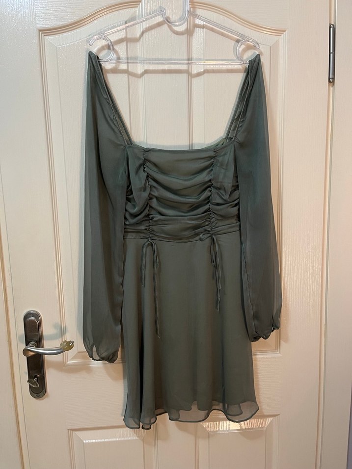 Haki yeşili şifon elbise ürünü abimin düğünü için almıştım çok severek giydim sadece 3 kez giyildi ürün temiz kullanıldı ve temiz şekilde gönderilecektir öğrenciyim acil paraya ihtiyacım olduğu için satıyorum umarım güle güle giyer yeni sahibi yazlık bütün organizasyonlarda çok hoş durucaktır son fotoğrafta üstümdeki duruşu mevcut