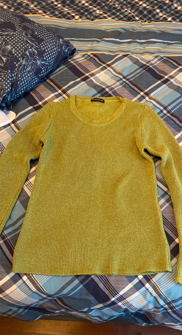 Yeşil simli örgü kadın kazak, yuvarlak yaka ve uzun kollu, yumuşak yünden, normal boyda, rahat sokak stili için uygundur. Hiç giyilmedi