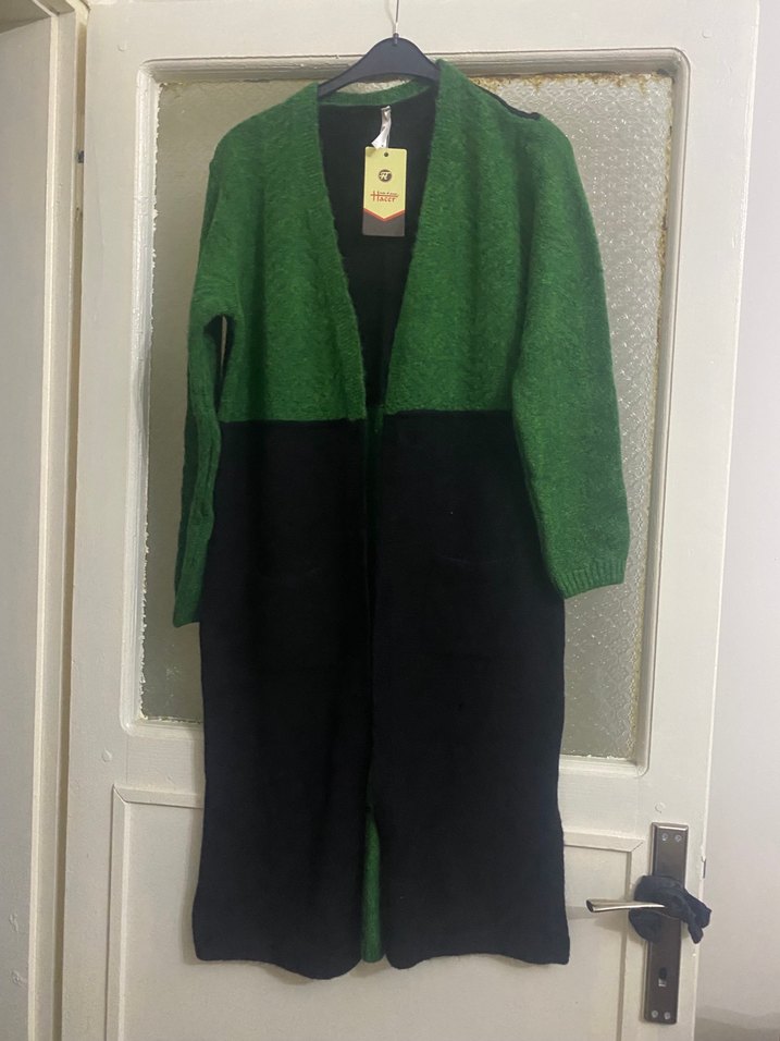 Yeşil Siyah Uzun Örgü Hırka 38 40 beden için uygundur