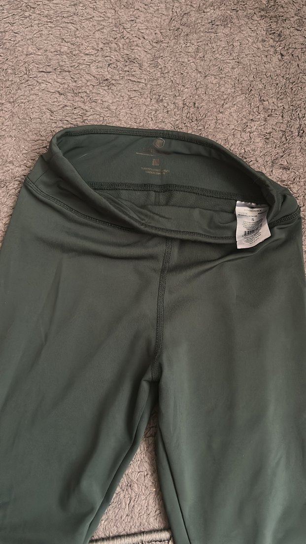 Düz yeşil renkli, sentetik kumaştan yapılmış, normal boy spor kadın taytı. Rahat ve şık bir spor tercihi. ♀️
