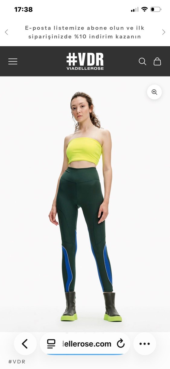 Yeşil renkli, desenli, sentetik kumaştan yapılmış, fitted kesim spor tayt. VIADELLEROSE logosu bulunur, şık ve rahat bir stil sunar. ♀️