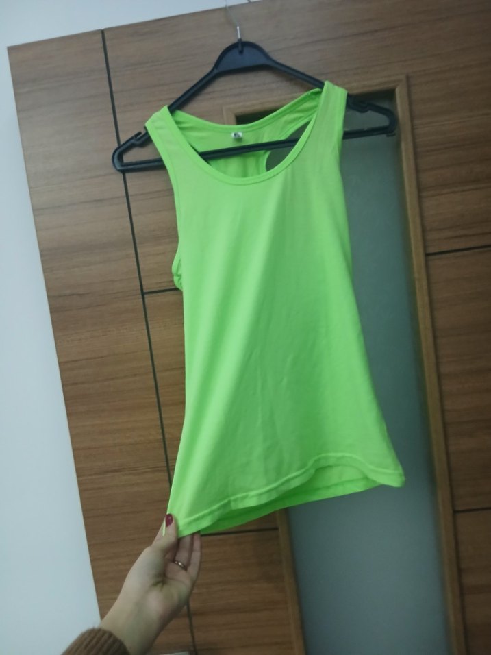 Açık yeşil renkte, kolsuz ve yuvarlak yakalı, vücuda oturan kesime sahip sentetik kumaştan sporcu atlet. Rahat ve şık sokak stili için uygun. ♀️