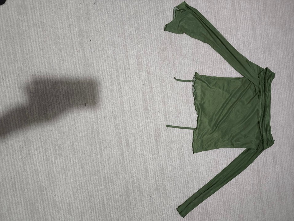 Sentetik kumaştan, fermuarlı, uzun kollu, yeşil straplez crop top. Sokak stili ve açık hava kullanımı için uygundur.