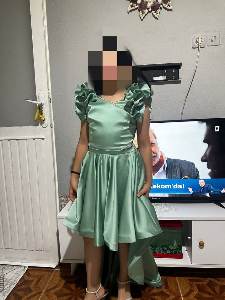 Yeşil Straplez Kız Çocuk Abiye Elbise