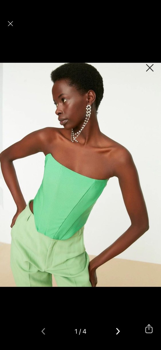 Pastel yeşil renkli, straplez ve kolsuz, düz desenli mini büstiyer. Düzgün kesimi ve sentetik yumuşak kumaşıyla şık bir sokak stili sunar.