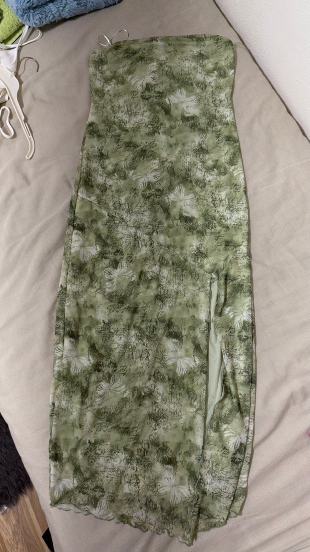 Yeşil Straplez Uzun Bohem Kadın Elbise