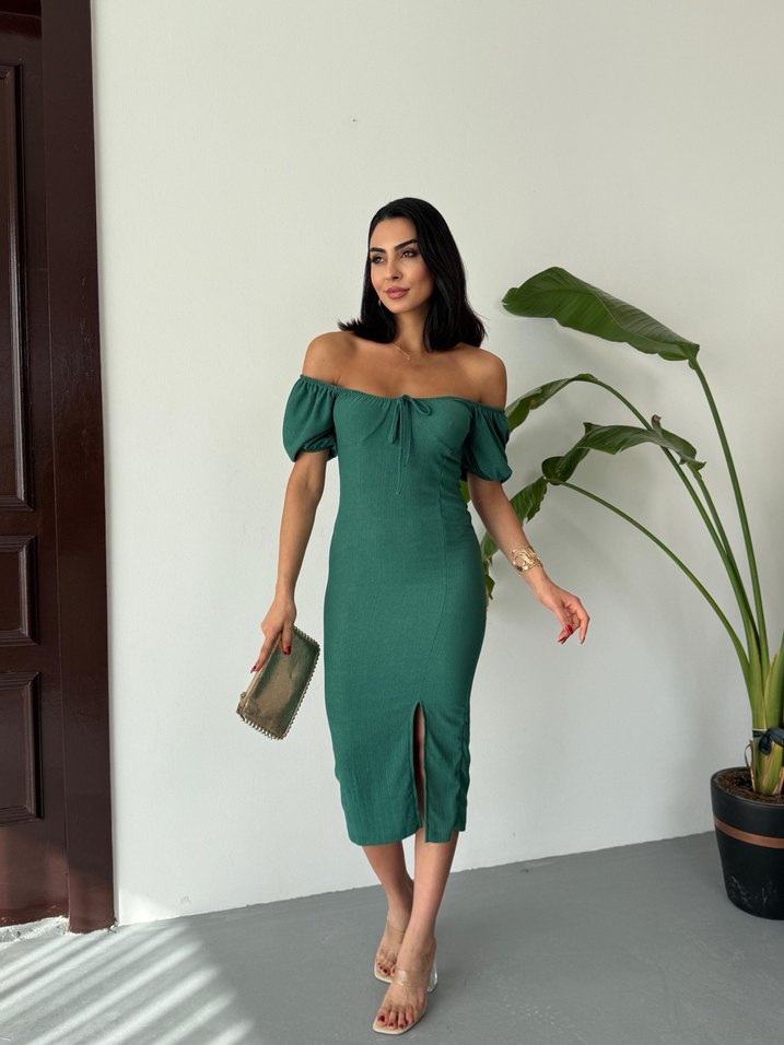 Yeşil Straplez Uzun Kalem Elbise