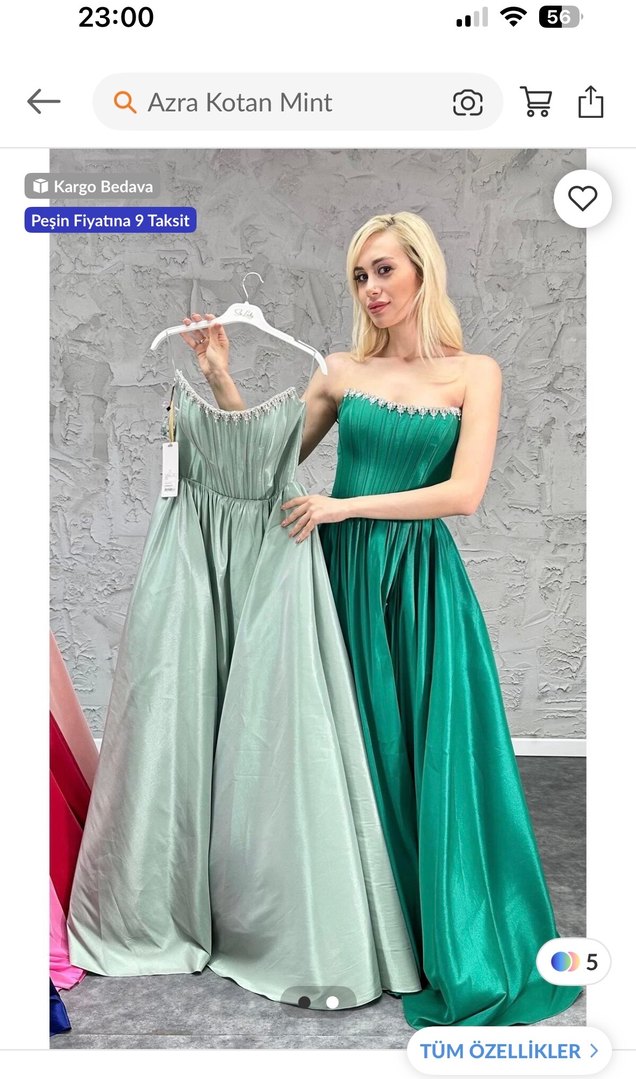 Azra Kotan’dan 48 beden mint renkli, straplez ve pilili gövdesi olan, baskılı desenli, klasik modern tarzda, düzenli kesim uzun abiye elbisedir. Düğünler için uygundur. ✨askıları da mevcuttur isterseniz takıp çıkartabilirsiniz.Bir kere bile giyilmedi sadece çok kabarık durduğu düşünüldüğü için iç kısmından astar kesildi, çok şık bir elbise. Ablamın düğününde fazla abartı olur diye giymedim. 48 beden bulmanız gerçekten çok zor ben mağazasından gidip almıştım.