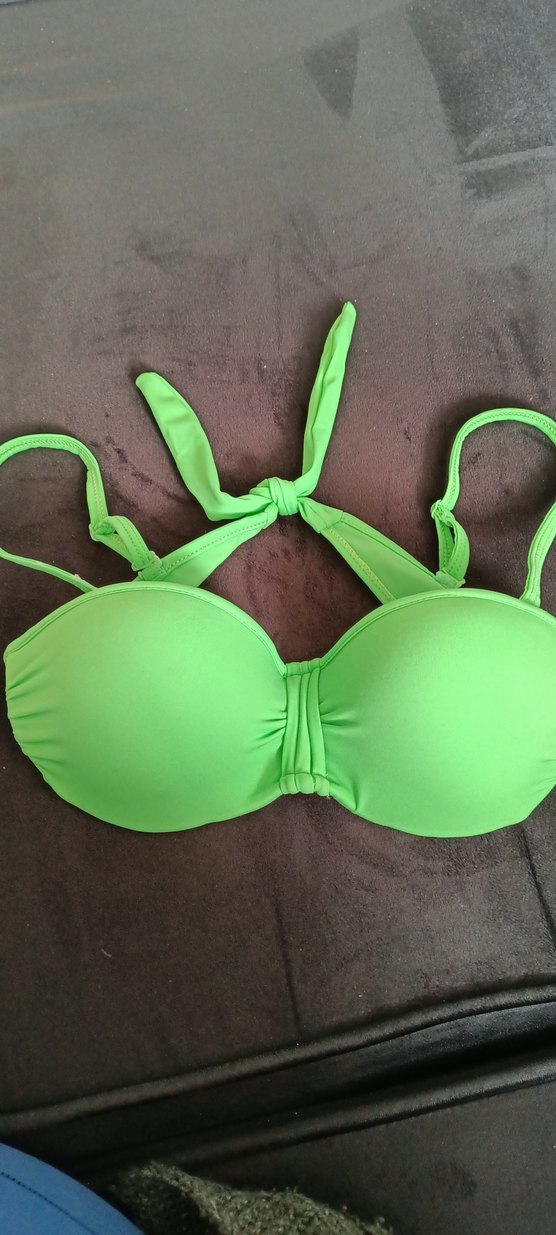 Yeşil renkli, askılı ve bağlamalı tasarıma sahip, vücuda oturan bikini üstü, plajda minimal ve renkli bir şıklık sunar yenidir hiç giyilmemiştir # bikini üstü # bayan bikini üstü #