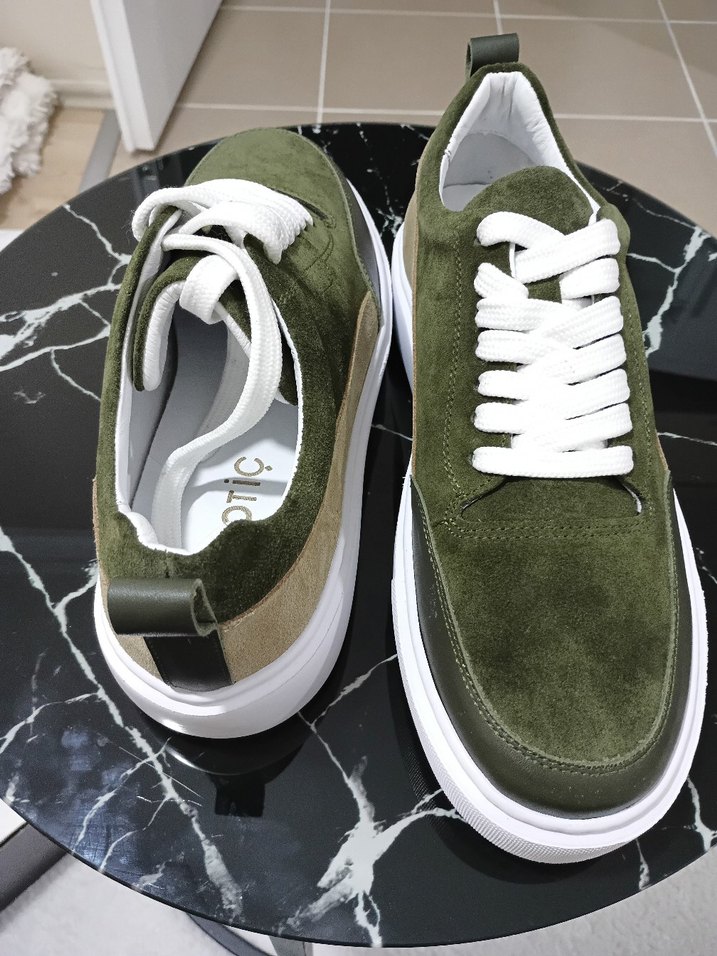 Yeşil Süet Bağcıklı Sneakers HOTİÇ