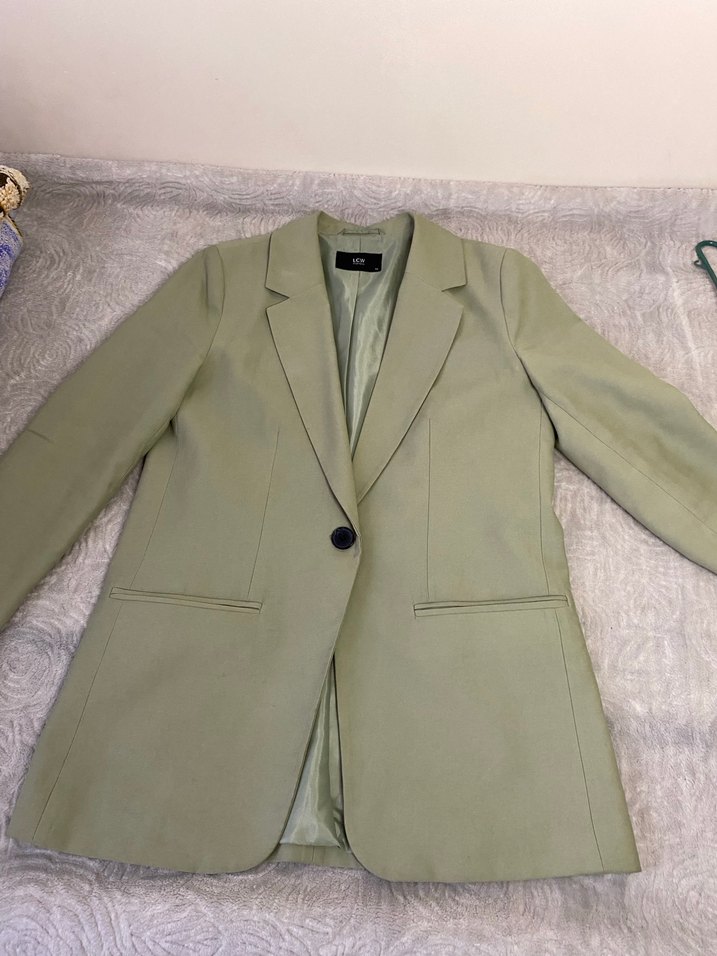 Pastel yeşil süet kumaştan, tek düğmeli, normal uzunlukta ve regular fit kesime sahip kadın blazer. Ofis ve günlük şıklık için uygundur.