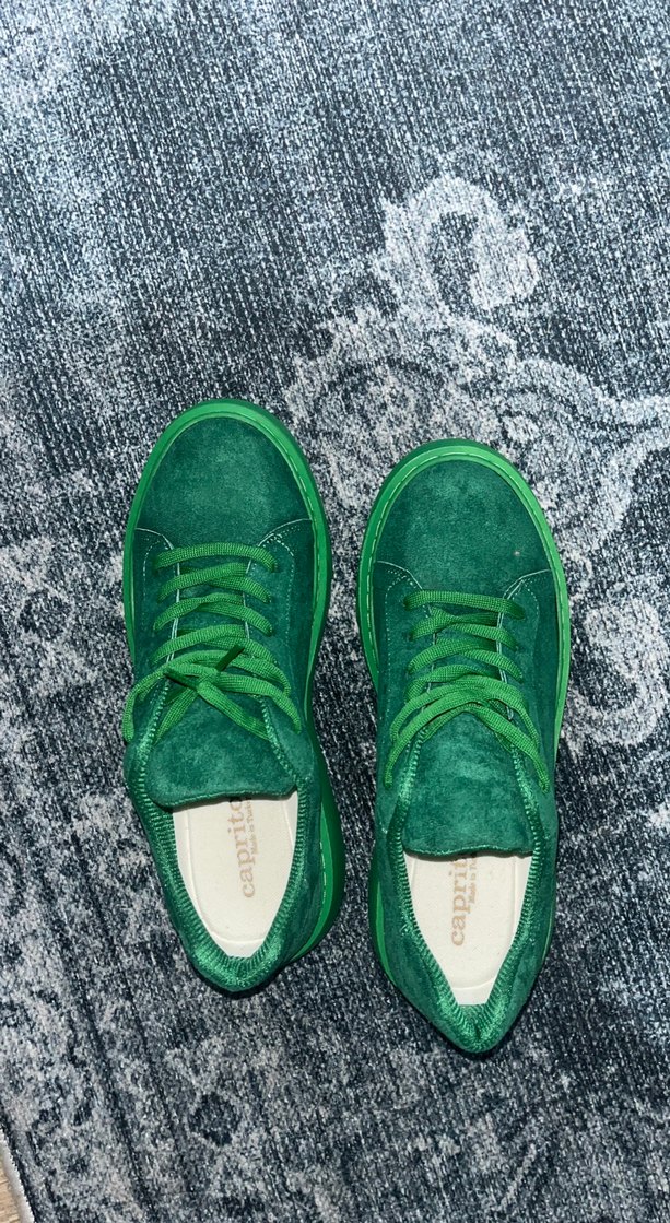 Yeşil süet malzemeden yapılmış,kadın spor ayakkabısı, sportif ve trend günlük kullanıma uygun. ♀️
