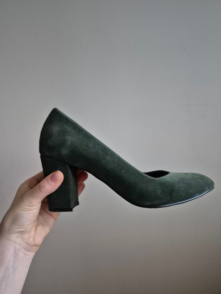 Ofis kullanımı için minimalist ve çağdaş tasarıma sahip, blok topuklu yeşil süet kadın stiletto. Zahmetsiz şıklık ve modaya uygun. Deformesi mevcut son fotoğrafa bakınız Çok retro bi ayakkabı rengi de hoş, günlük kullanıma uygun 36 numara Silinip temiz bir şekilde kargo edilecektir.