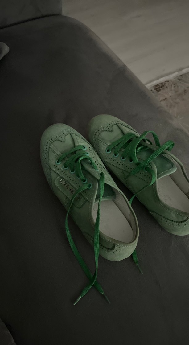Yeşil süet malzemeden stiletto topuklu kadın spor ayakkabısı, sokak modası tarzıyla rahat şıklığı bir araya getirir. Günlük kullanıma uygundur.