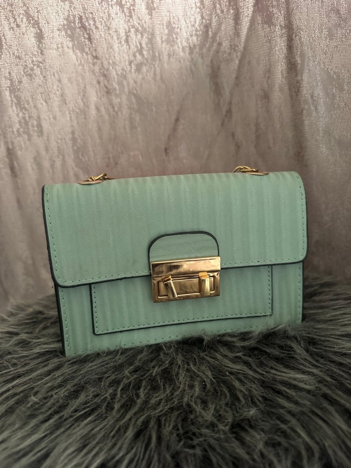 Pastel yeşil süet tokalı kapaklı, modern klasik tasarımlı kadın çantası, günlük kullanıma uygun Paris tarzı şıklık sunar. Hiç kullanılmadı