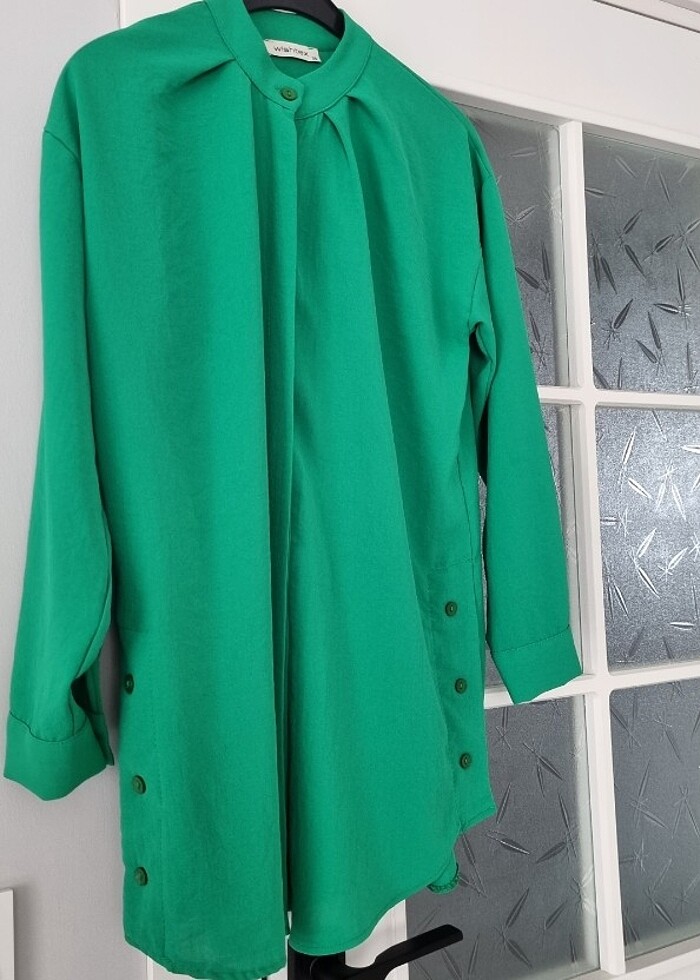 Yeşil takım tunik ve pantolon yandan düğmeli 36 beden ama 38 e de uyumlu