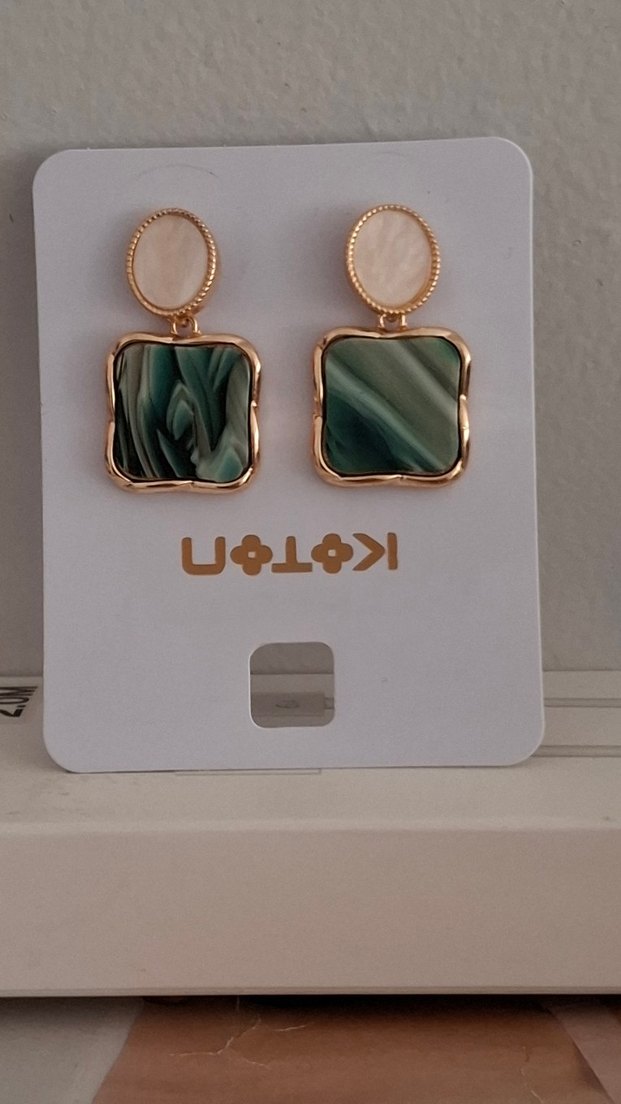 Hiç kullanılmamış yeşil ve beyaz taş detaylı koton küpe