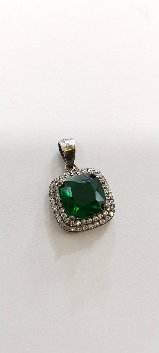 Kadın kolye ucu, orta boy yeşil taş ve etrafını çevreleyen küçük parlak taşlarla modern klasik tarz sunar. ➡️925 AYAR GÜMÜŞ ➡️ AĞIRLIK:2.00➡️SIFIR ÜRÜN ➡️ GARANTİ SERTİFİKASI