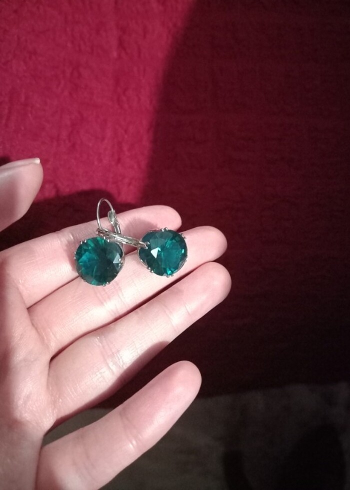 Yeşil taşlı küpe