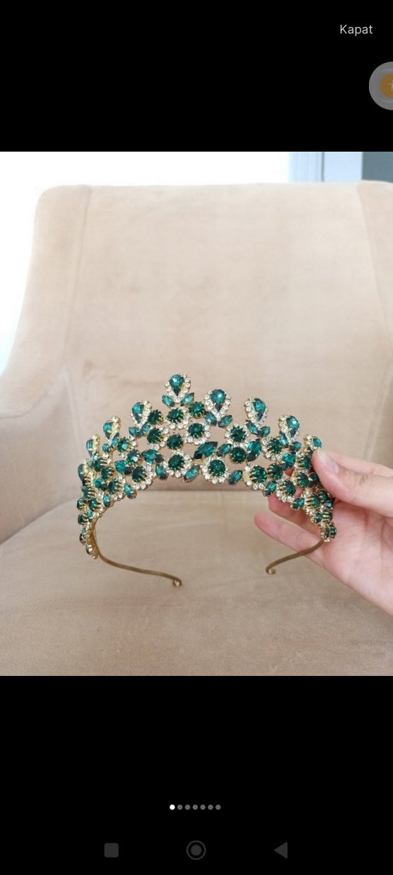 yeşil Taşlı Payetli gelin taç