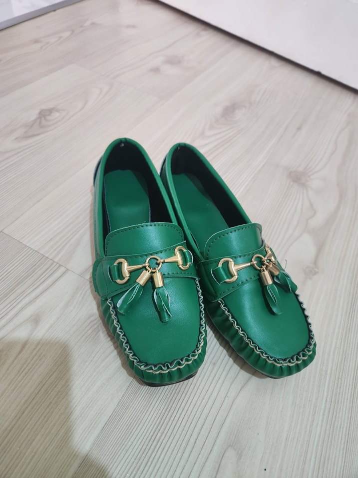 Yeşil renkte, tokalı, blok topuklu kadın babetleri, günlük sokak stili için uygundur,ürün hiçgiyilmemiştir