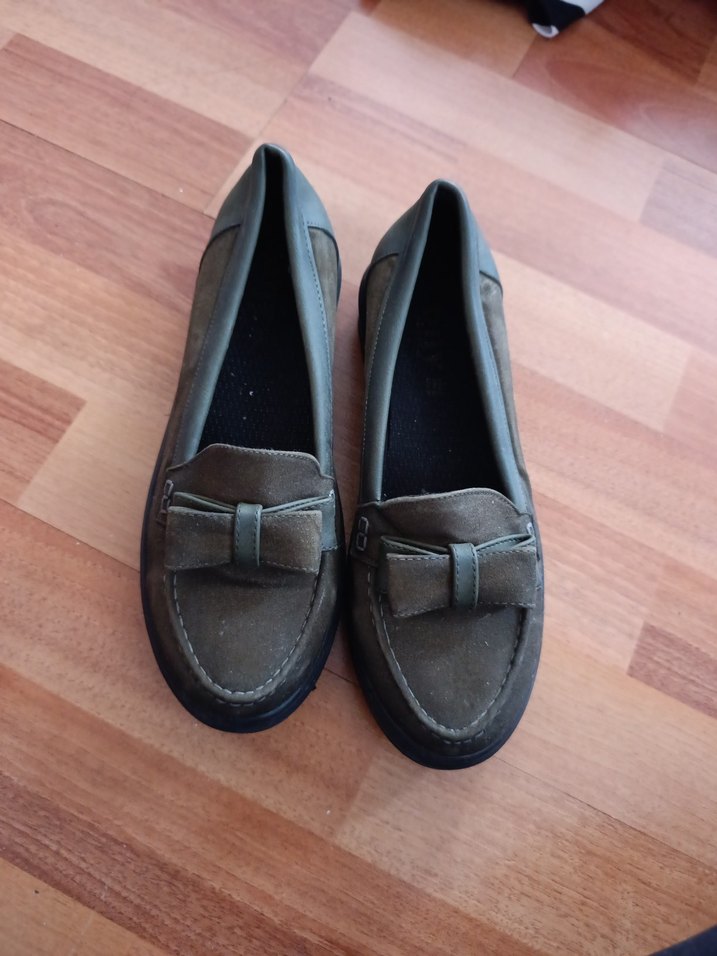 yeşili tokalı kız çocuk loafer ayakkabılar, rahat kauçuk tabanlı ve sade normcore tarzında tasarlanmıştır.