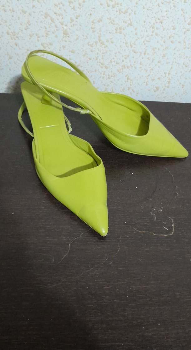 Yeşil renkte, tokalı bantlı, sivri burunlu kadın stiletto. Minimalist ve çağdaş tarzıyla ofis kullanımı için uygundur.