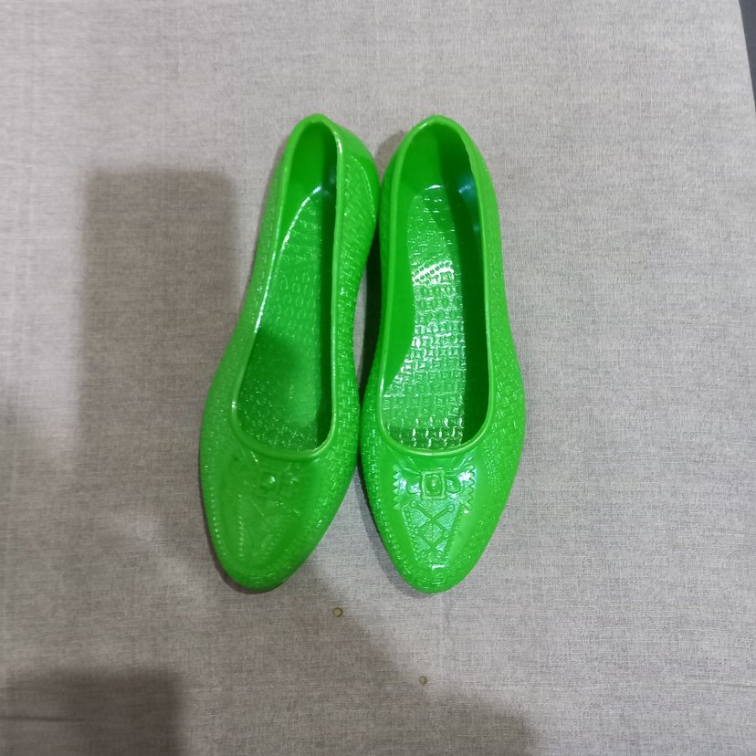 Yeşil topuklu naylon lastik bayan ayakkabı