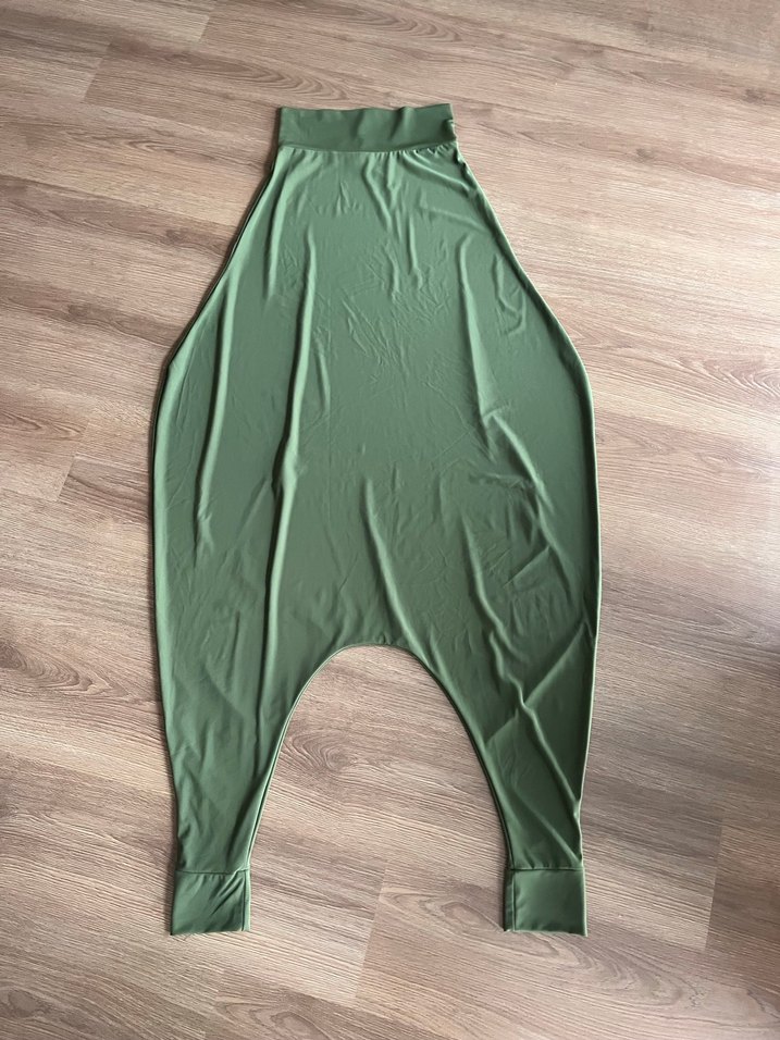 Yumuşak jarse kumaştan yapılmış, tulum şalvar, bol kesim yeşil. Günlük sokak stili için uygundur. Bedeni M el yapımıdır.