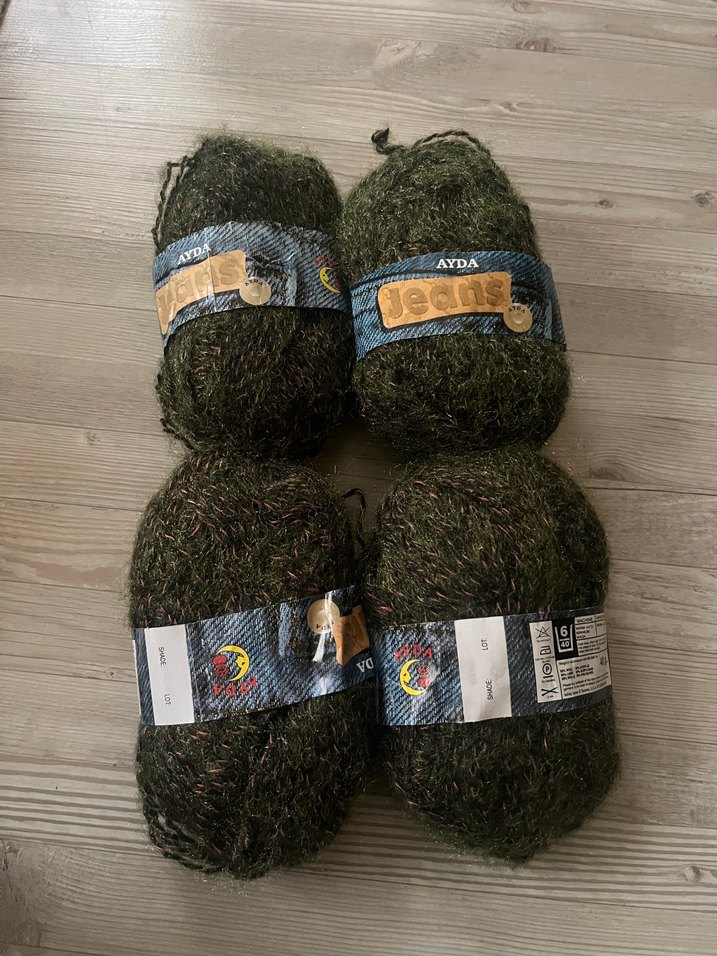 Yeşil tüylü, yumuşak dokulu el işi ipliklerinden oluşan dört adet set. Counterculture tarzı el işleri için uygundur.