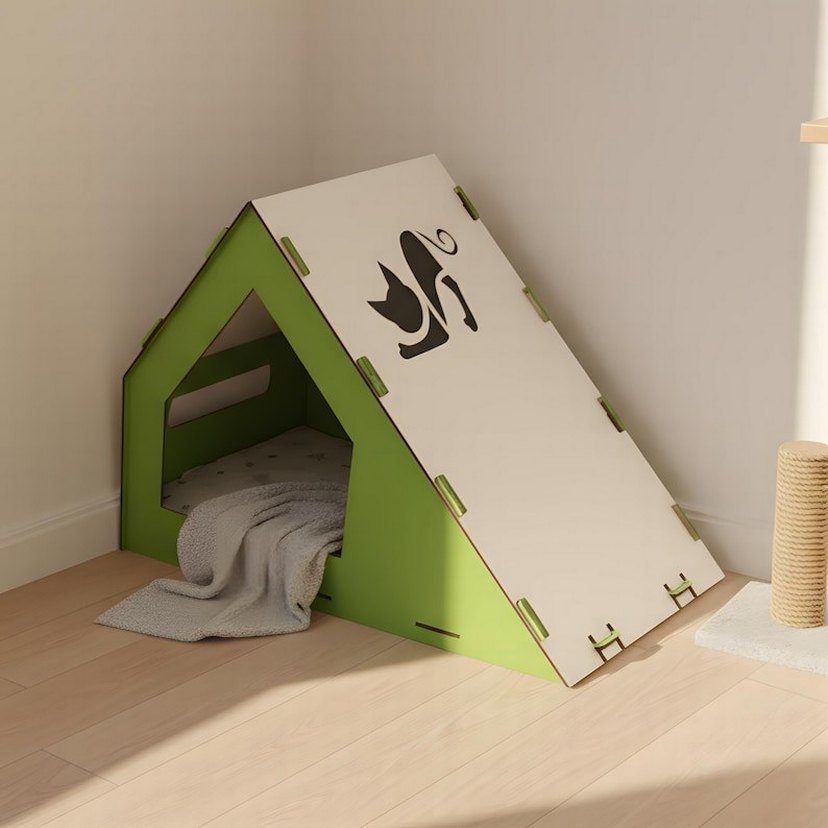 Yeşil Üçgen Kedi Evi Özrl Tasarım İsimli