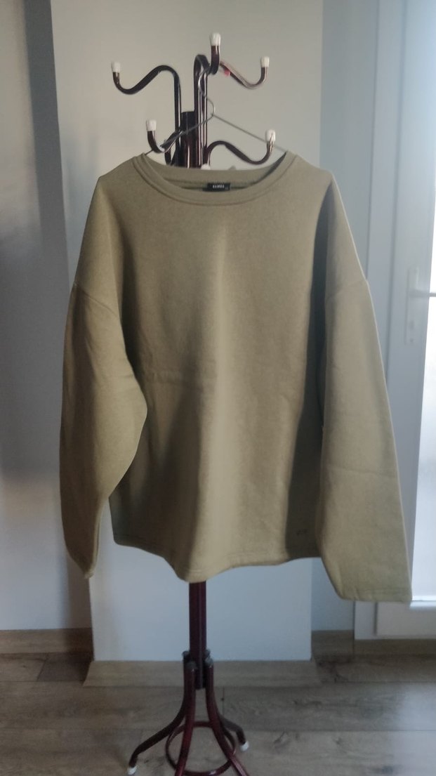 Kadın sweatshirt, yuvarlak yaka ve uzun kollu, rahat kesimdir. Normal midi boyda, yumuşak ve sıcak kumaştan bej-gri tonlarında, minimalist ve desensizdir. ✨